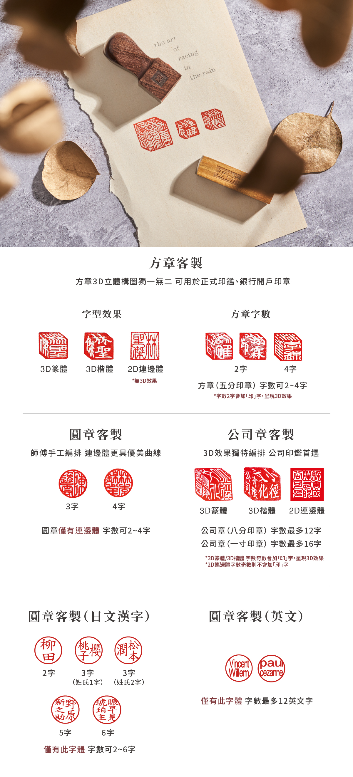 A一般人姓名2~4字都有,因此我們也有做到最多4個字的印章,而兩個字的話,為了3D立體美觀,側面會再加”印”字。而加印字是各個銀行開戶、簽約都可以接受的印鑑。